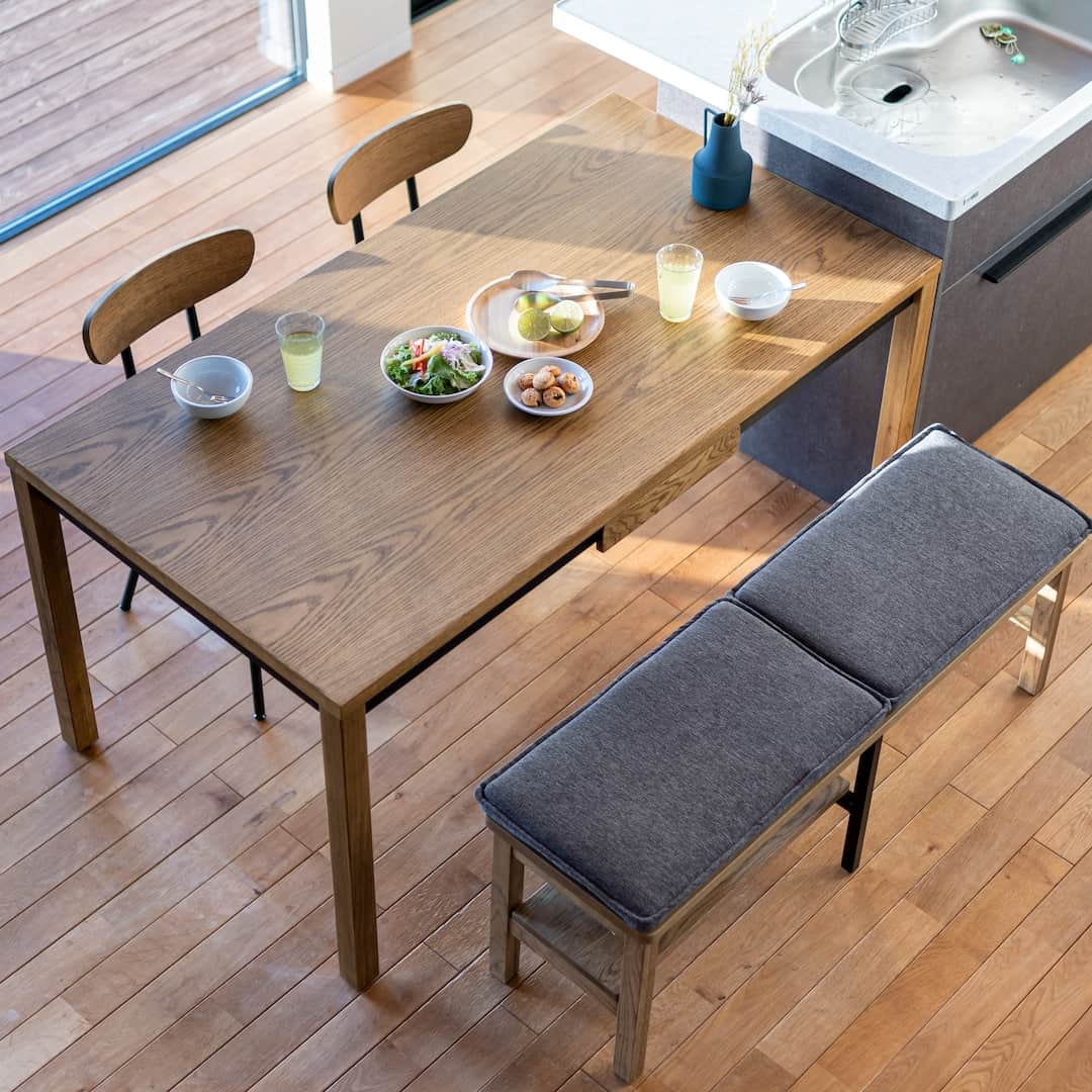 スタンダイニングテーブルは、木材とスチールを組み合わせた、素材のコントラストが特徴的なダイニングテーブルです。