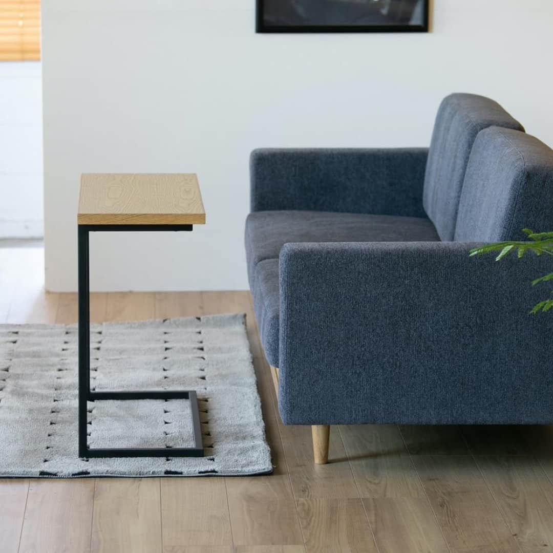 ソファへの収納性が高いコの字型テーブルハントサイドテーブルの奥行きは約30cmとスリム設計のサイドテーブル。