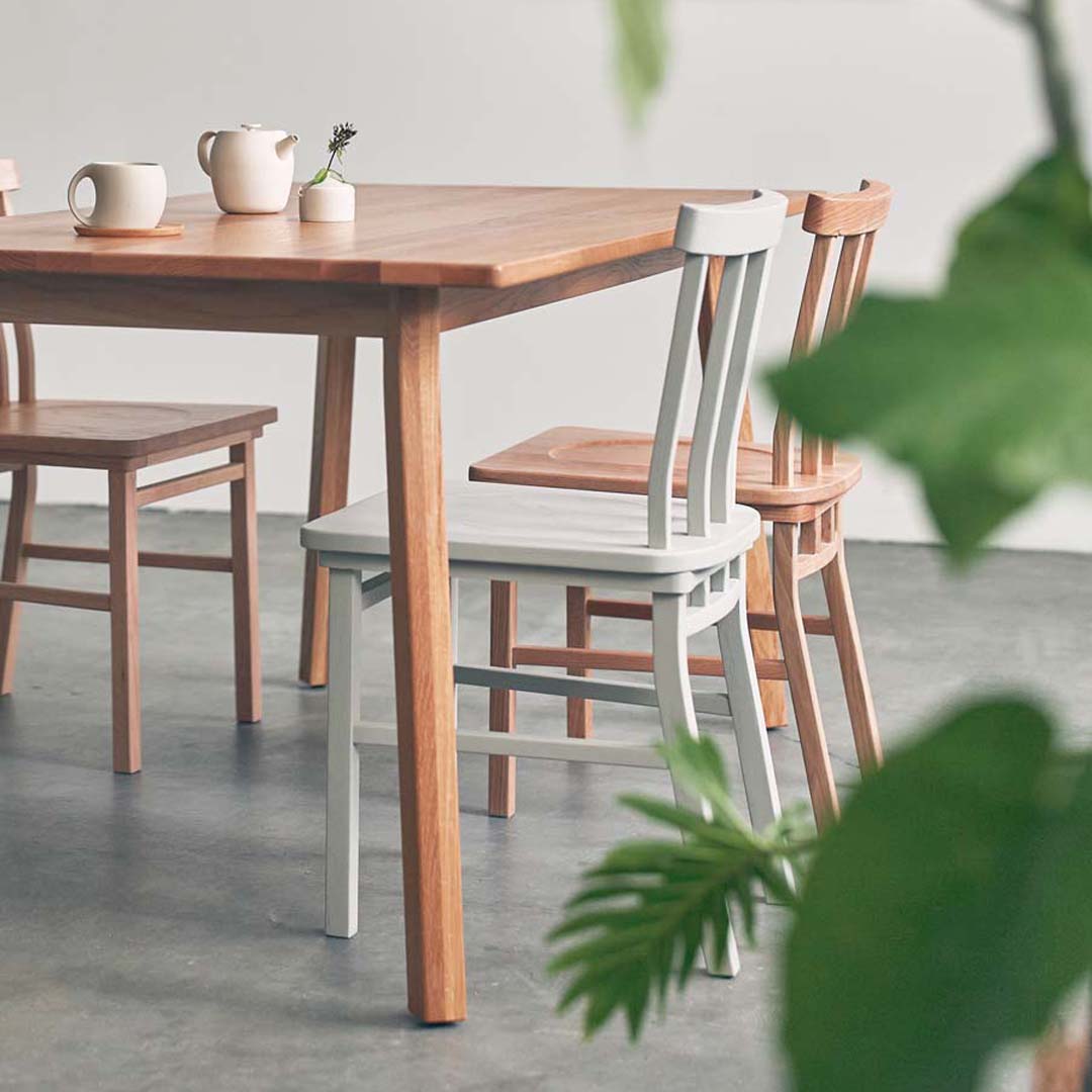 オーク無垢材の重厚で存在感のある雰囲気と軽やかな見た目を組み合わせたチェアです。