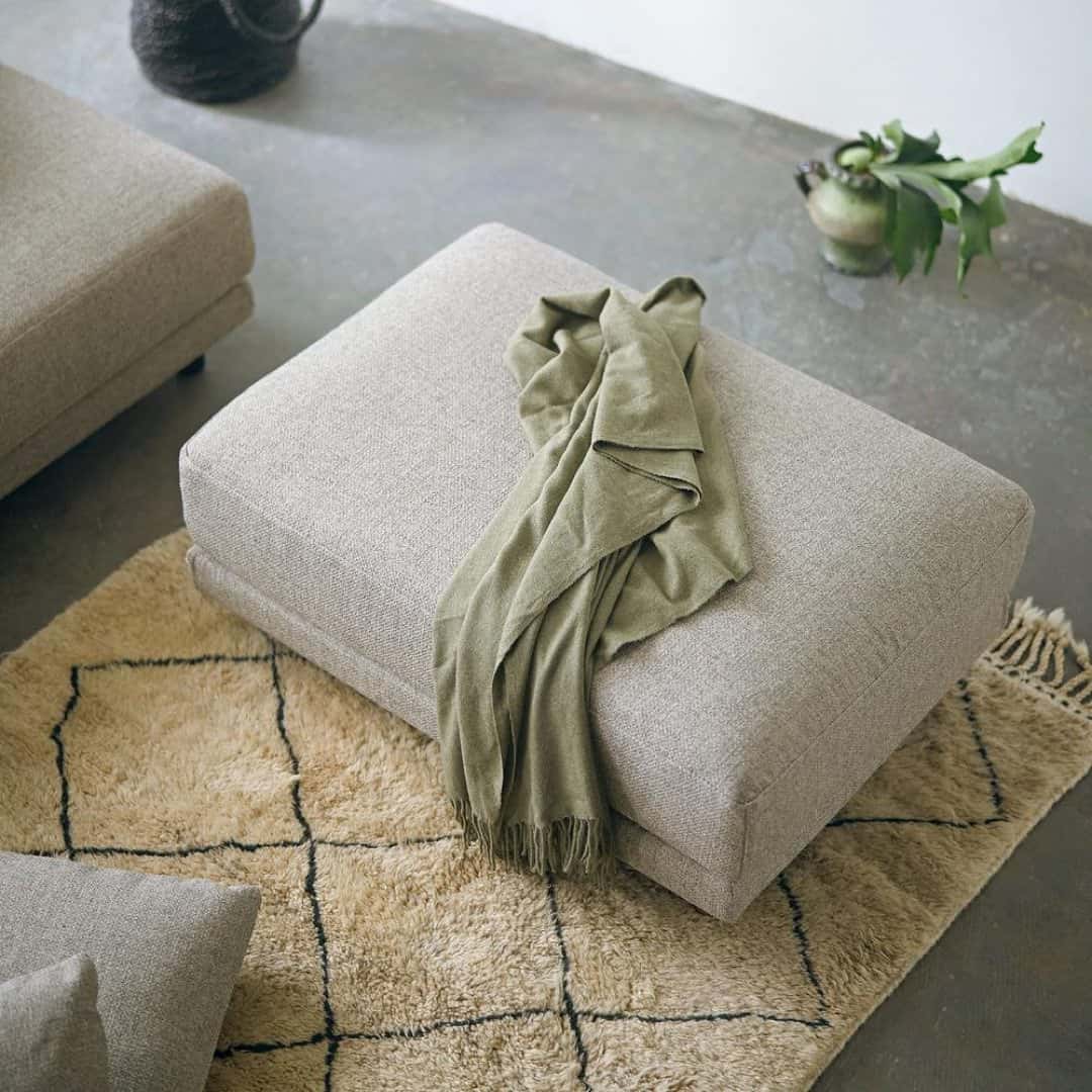 オットマンを足してカウチソファ風にソファに長時間座ることが多い方に、特におすすめしたいアイテムがオットマン。