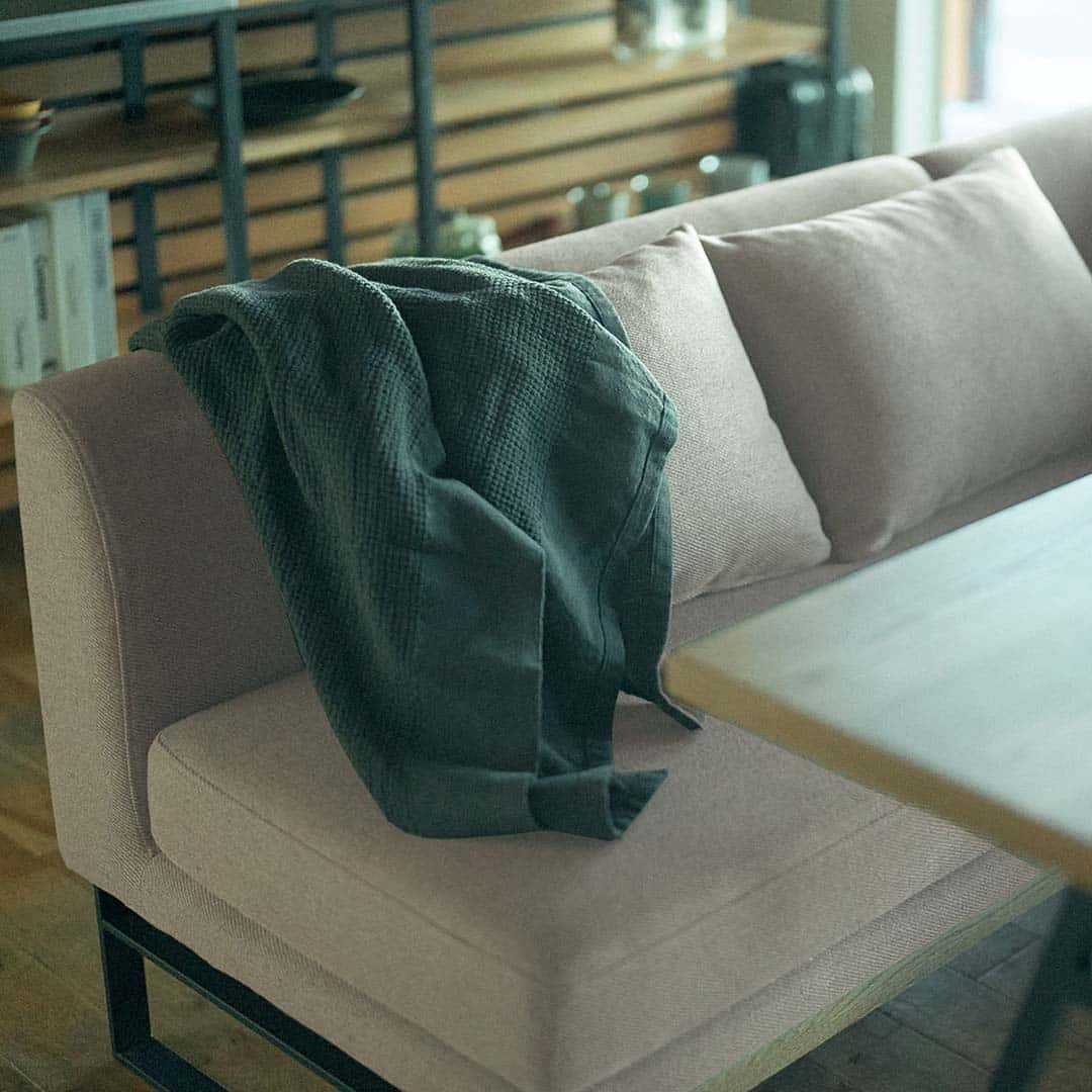 - 無垢材のフレームとスチール脚で構成された、すっきりとした印象のリビングダイニングソファです。様々な生活スタイルに合わせやすいデザインが特徴です。