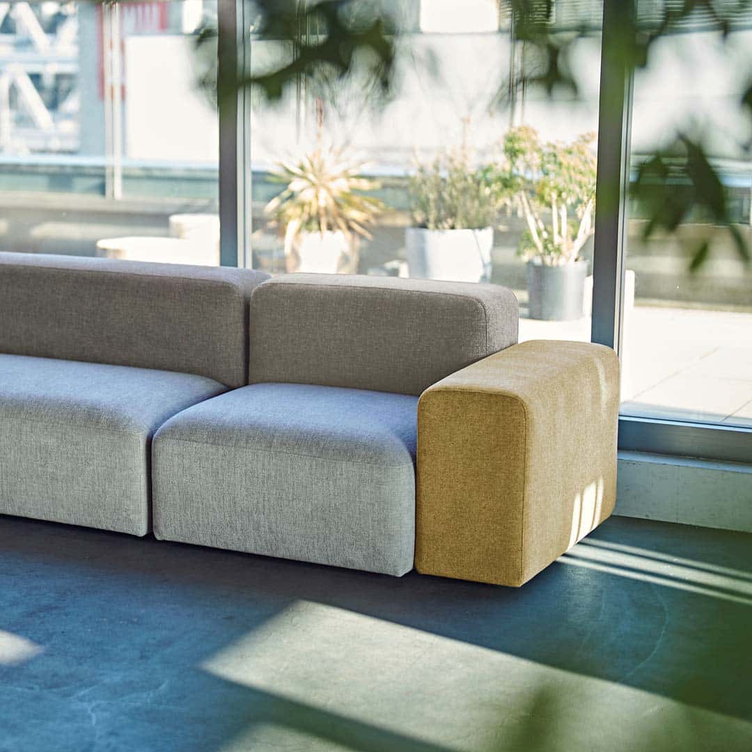 - 軟質エラストマー樹脂製のノンスリップ加工脚を採用しており、グリップ性、床保護性、吸振性に優れています。これにより、ソファ同士を連結させる必要がなく、ずれにくい設計となっています。