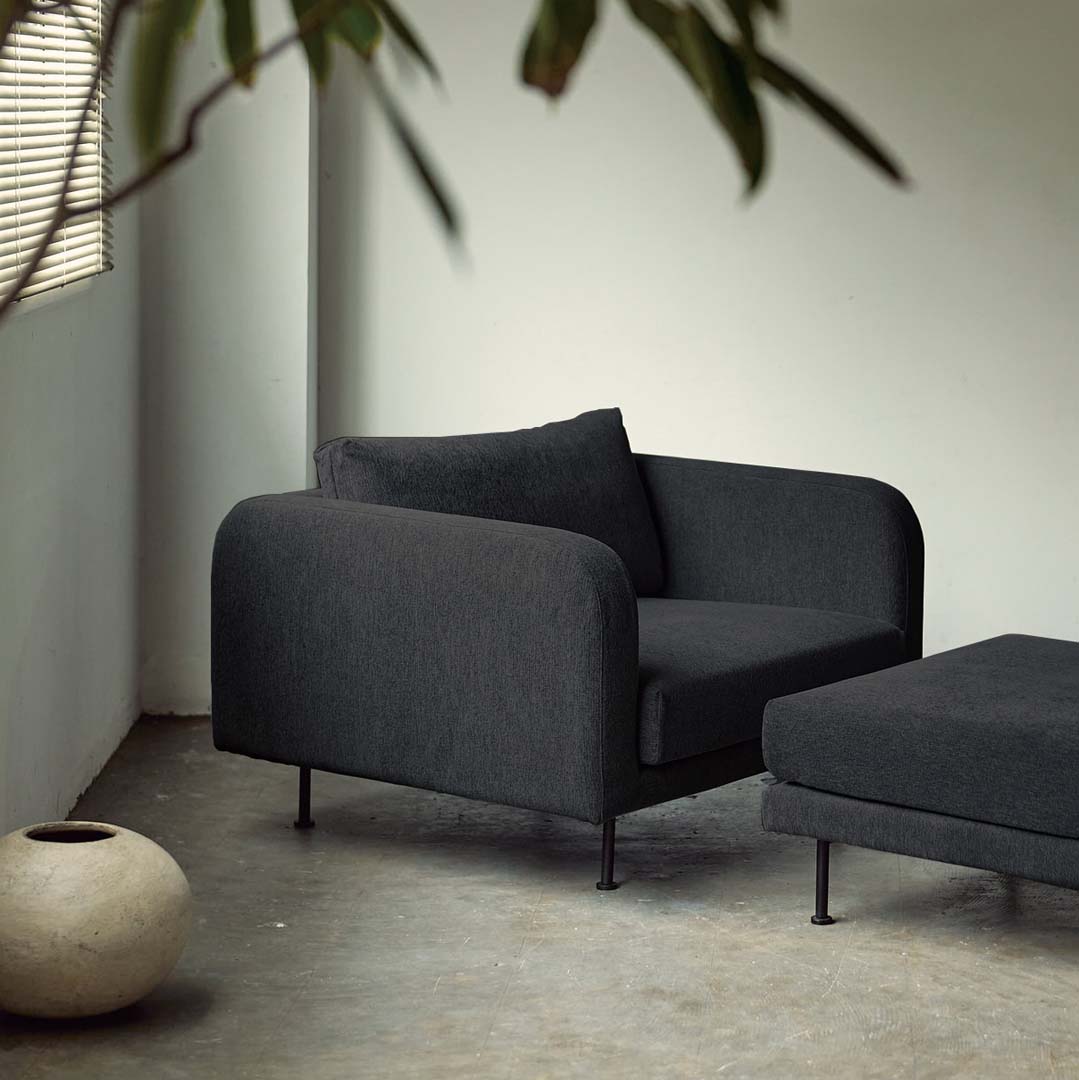 (ブラック)ボリュームのある本体にスタイリッシュな脚を合わせた、不思議なバランス感を目指したソファです。