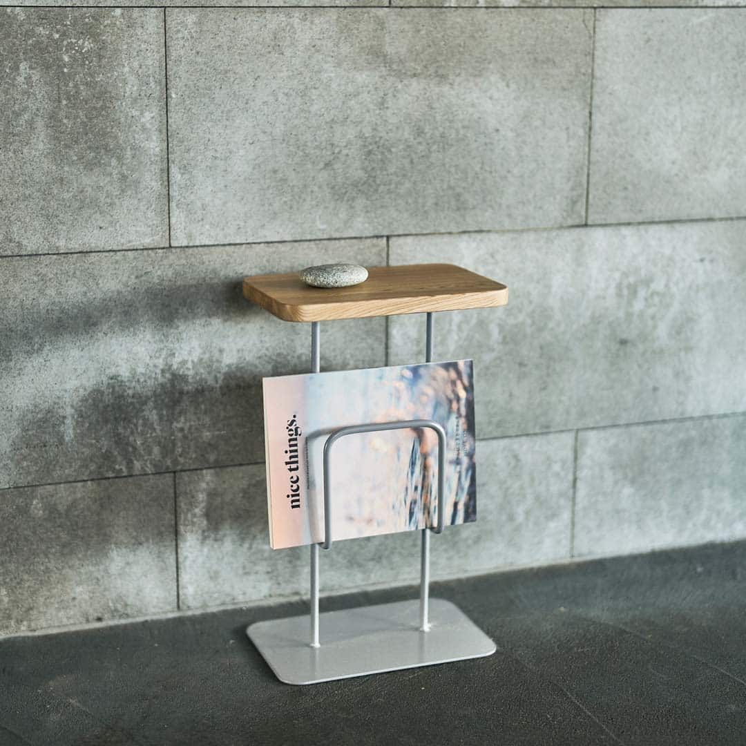 2本の縦線をベースとしたシンプルなデザインと省スペースに対応したコンパクトなサイドテーブルです。