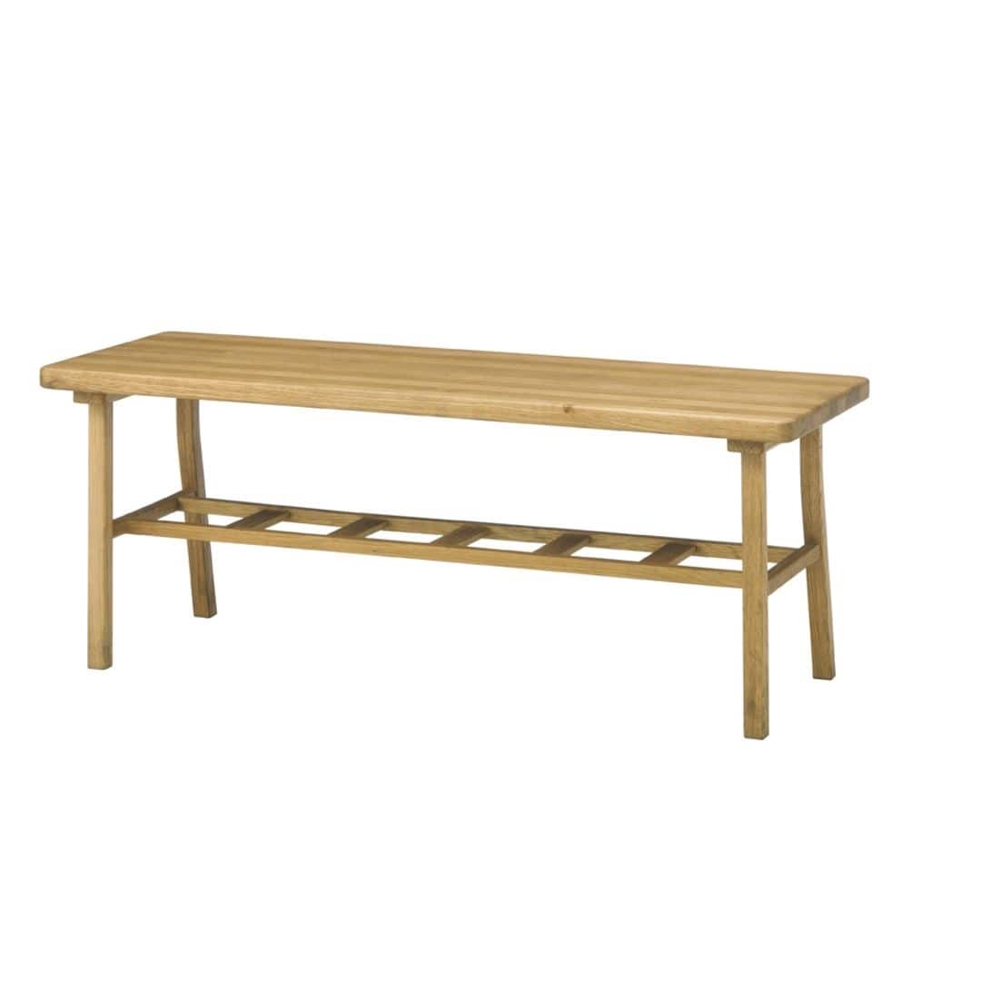 アシンメトリー(左右非対称)でバランスを整えたスッキリとしたデザインと、細部に丸みや動きを持たせ優しい雰囲気のベンチは、お部屋になじみやすくもしっかりとした存在感を持っています。
