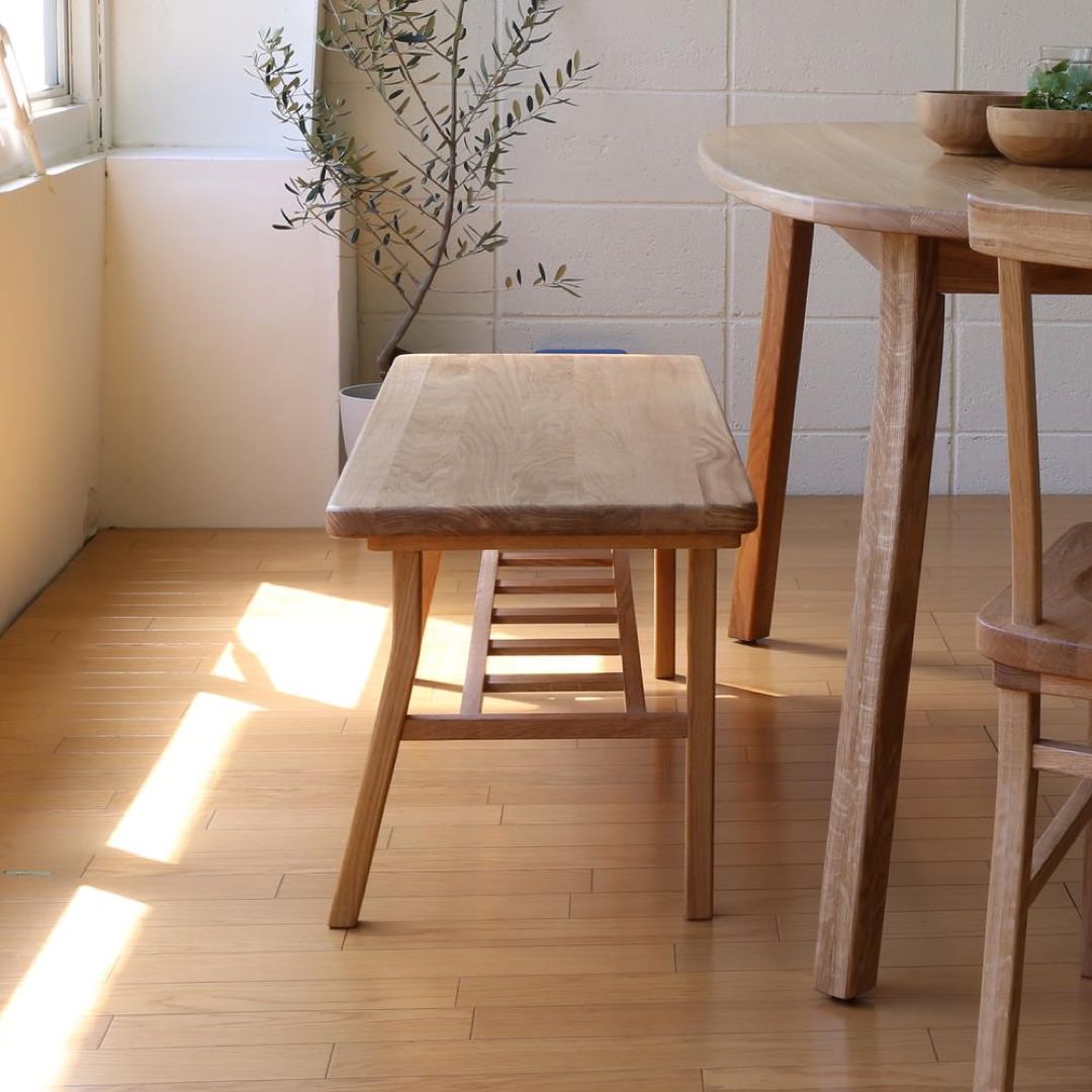 ベンチは背もたれがないので圧迫感も抑えられ、リビングダイニングの空間がより一層広がります。後ろ向きに座る事もでき、コミュニケーションの幅も広がります。