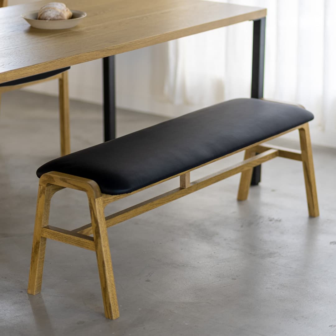 合成皮革(PVC)クッション材:ウレタンフォームフレーム:オーク無垢材(ウレタン塗装)背:オーク突板化粧板(ウレタン塗装)