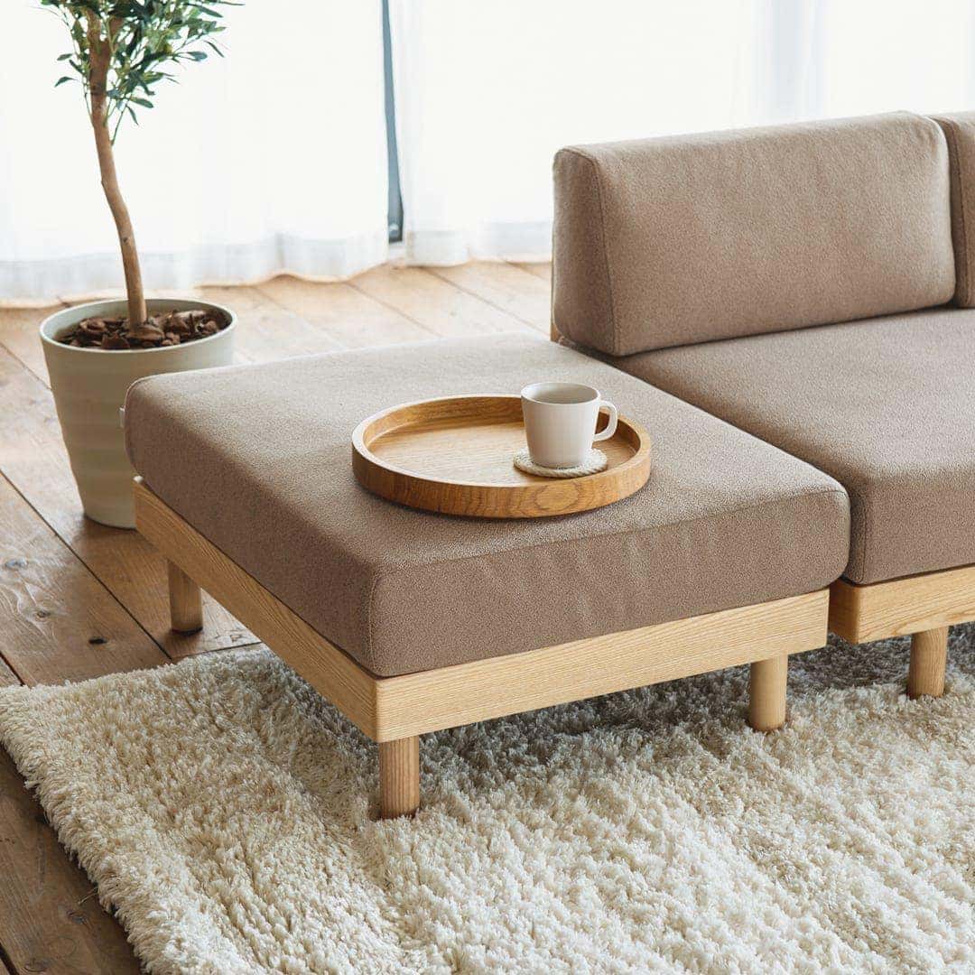 ファブリック:ポリエステル100%クッション材:ポケットコイル(1個φ65×H65mm 配列6×9個)、ウレタンフォーム、シリコンフィルフレーム:アッシュ無垢材(ウレタン塗装)